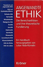 Julian Nida-Rümelin (Hrsg.), Angewandte Ethik. Die Bereichsethiken und ihre theoretische Fundierung. Ein Handbuch, Stuttgart 2005, 2. AuflageBei diesem Buch handelt es ich um eine Reihe von Abhandlungen verschiedener renommierter Autoren zu je einem Themenbereich angewandter Ethik. Die Themen der Beiträge und ihre Autoren sind die folgenden: Theoretische und angewandte Ethik (Julian Nida-Rümelin), Ethik und Geschlechterdifferenz (Herlinde Pauer-Studer), Politische Ethik I: Ethik der politischen Institutionen und der Bürgerschaft (Julian Nida-Rümelin), Politische Ethik II: Ethik der Internationalen Beziehungen (Christine Chwaszcza), Rechtsethik (Dietmar von der Pfordten), Wirtschaftsethik (Walther Ch. Zimmerli, Michael S. Aßländer), Ökologische Ethik I: Grundlagen und Grundbegriffe (Angelika Krebs), Ökologische Ethik II: Ökologische Gerechtigkeit: Global, intergenerationell und humanökologisch (Anton Leist), Tierethik I: Zu den philosophischen und ethischen Grundlagen des Tierschutzes (Julian Nida-Rümelin), Tierethik II: Zu den ethischen Grundlagen des Deutschen Tierschutzgesetzes (Julian Nida-Rümelin, Dietmar von der Pfordten), Technikethik (Konrad Ott), Ethik der Gen- und der neuen Biotechnologie (Bernhard Irrgang), Medizinethik (Bettina Schöne-Seifert), Medienethik (Will Teichert), Wissenschaftsethik (Julian Nida-Rümelin), Ethik des Risikos (Julian Nida-Rümelin), Wert des Lebens (Julian Nida-Rümelin). Die Beiträge sind von hoher wissenschaftlicher Qualität und bei insgesamt über 900 Buchseiten ist auch Platz genug für eine ausführlichere Darstellung der einzelnen Themen. Ich finde die Beiträge überwiegend überzeugend und gelungen. Allerdings mangelt es in einigen Beiträgen meiner Meinung nach hin und wieder an einer gewissen Allgemeinverständlichkeit, so dass sich Nicht-Akademiker vermutlich hie und da als etwas 'ausgeschlossen' empfinden mögen, wenn sie denn zu diesem Buch wirklich greifen sollten. Mich persönlich würde es freuen einmal zu diesem Thema ein Buch anzutreffen (das es wahrscheinlich auch irgendwo geben mag), das breitere Leserschichten anzusprechen vermag, zumal die Problembereiche der angewandten Ethik von nicht selten brennender und spannender Aktualität sind und eigentlich uns alle angehen. Insgesamt ein empfehlenswertes Buch, wie ich meine. Jürgen Czogalla, 05.06.2010